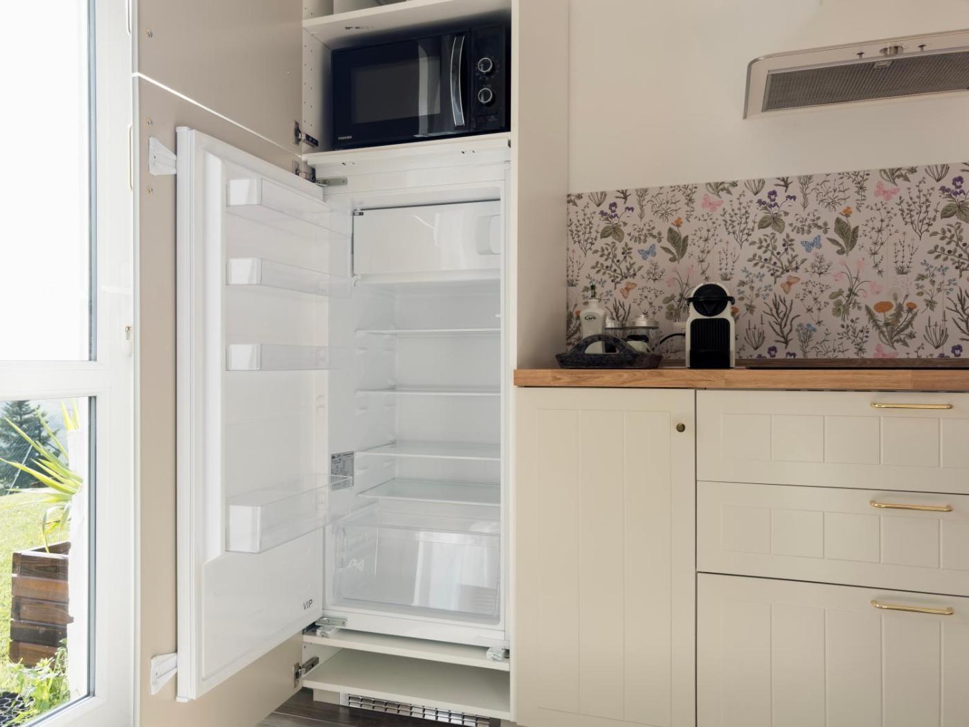One-Bedroom Apartment. Featuring a private entrance, this apartment comprises 1 living room, 1 separate bedroom and 1 bathroom with a shower and a hairdryer. Meals can be prepared in the kitchen, which comes with a stovetop, a refrigerator, kitchenware and a microwave. The apartment features tiled floors, a seating area with a flat-screen TV, a washing machine, a tea and coffee maker as well as garden views. The unit offers 2 beds.
